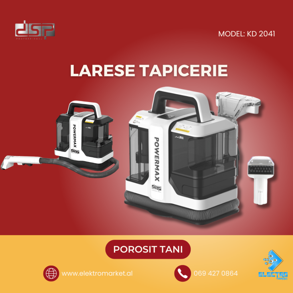 Larese Tapicerie DSP 📌 Detajet: Fuqia: 450 W Tensioni: 220-240V Adsorbimi maksimal: ≥11 Kpa Rrjedha maksimale e ajrit: ≥10L/S Shkalla e shkarkimit të ujit (furca e madhe): 400 m/min Shkalla e shkarkimit të ujit (furça e vogël): 370 ml/min Fuqia maksimale e absorbimit: ≥40 W Zhurma: ≤80 dB(A) Kapaciteti i rezervuarit të ujit të pastër: 1080 ml Kapaciteti i rezervuarit të mbetjeve: 850 ml Materiali i rezervuarit të ujit: ABS 📍Ndodhemi ne tregun Çam, Tirane 🚚 Mundesojme dergesa ne te gjithe Shqiperine Per cdo informacion ose porosi online na kontaktoni ne 📥/📞 Whatsapp ose tel 0694270864