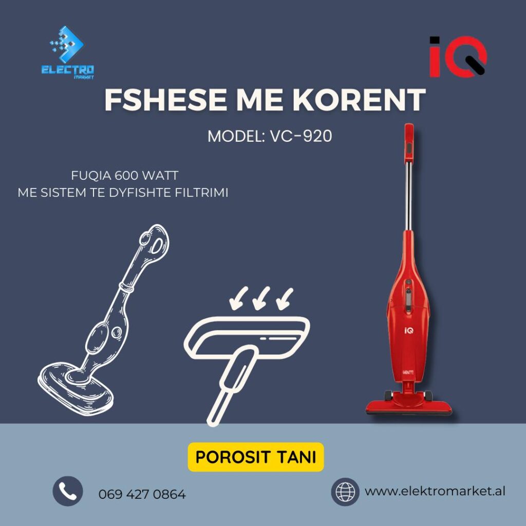 Fshese me korent IQ 📌 Detajet: • Fuqia 600 watt • Me sistem filtrimi të dyfishtë • Përdorim i dyfishtë: me dorë ose me shkop 📍Ndodhemi ne tregun Çam, Tirane 🚚 Mundesojme dergesa ne te gjithe Shqiperine Per cdo informacion ose porosi online na kontaktoni ne 📥/📞 Whatsapp ose tel 0694270864