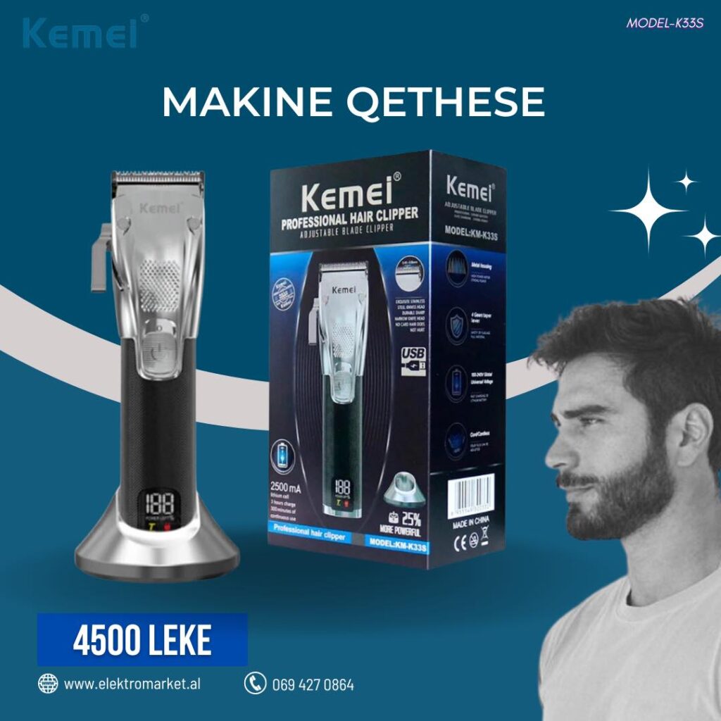 Makine Qethese Kemei 📌 Detajet Lloji i energjisë: i rikarikueshëm Tensioni: 100-240 V Koha e karikimit: 3.5 orë Koha e punës: 350 minuta Motorri: shumë i fuqishëm Materiali: abs Bateria: 2500 mAh Motorri: 7000-7300 rpm Teh prerës: çelik i cilësisë së lartë Fuqia: 5 W Kapaciteti i baterisë: 1200 mAh Koha e punes: rreth 180 minuta Koha e karikimit: 3 orë 📍Ndodhemi ne tregun Çam, Tirane 🚚 Mundesojme dergesa ne te gjithe Shqiperine Per cdo informacion ose porosi online na kontaktoni ne 📥/📞 Whatsapp ose tel 0694270864