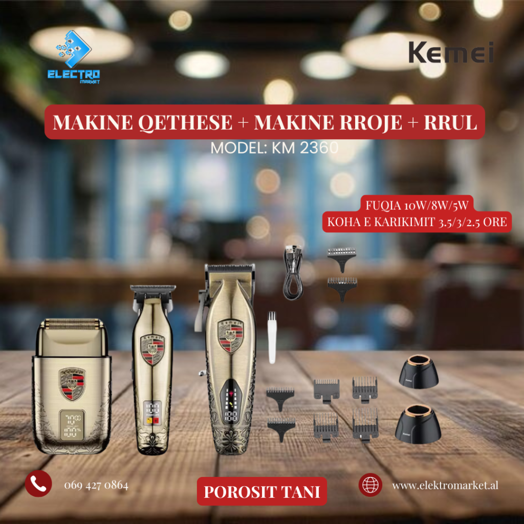 Makine Qethese + Makine Rroje + Rrul Kemei 📌 Detajet: Fuqia 10W/8W/5W Koha e karikimit 3.5/3/2.5 ore Koha e perdorimit 210-120 minuta Materiali i tehut Teh DLC Kapaciteti i baterisë 2500/2000/1400 mAh 📍Ndodhemi ne tregun Cam, Tirane 🚚Mundesojme dergesa ne te gjithe Shqiperine Për çdo informacion ose porosi online na kontaktoni në 📥 DM/📞Whatsapp ose tel 0694270864