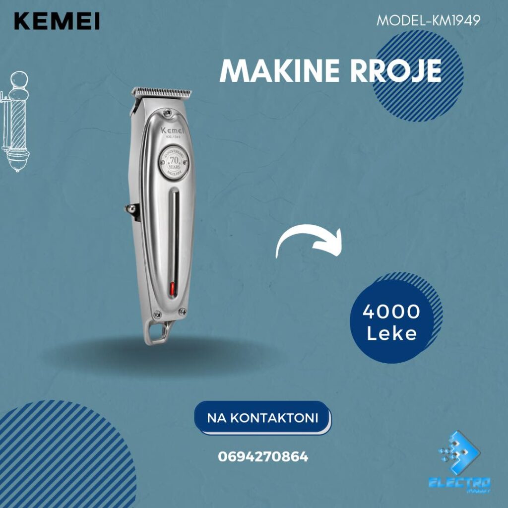 Makine Rroje Kemei 📌 Detajet: Lloji: i rikarikueshëm Koha e përdorimit: 180 minuta Koha e karikimit: 3 orë Tensioni: 100-240 V Motorri: Shume i fuqishëm Përmbajtja e paketës: 1 x furçë 1 x kabllo usb 4 x krehera 📍Ndodhemi ne tregun Çam, Tirane 🚚 Mundesojme dergesa ne te gjithe Shqiperine Per cdo informacion ose porosi online na kontaktoni ne 📥/📞 Whatsapp ose tel 0694270864