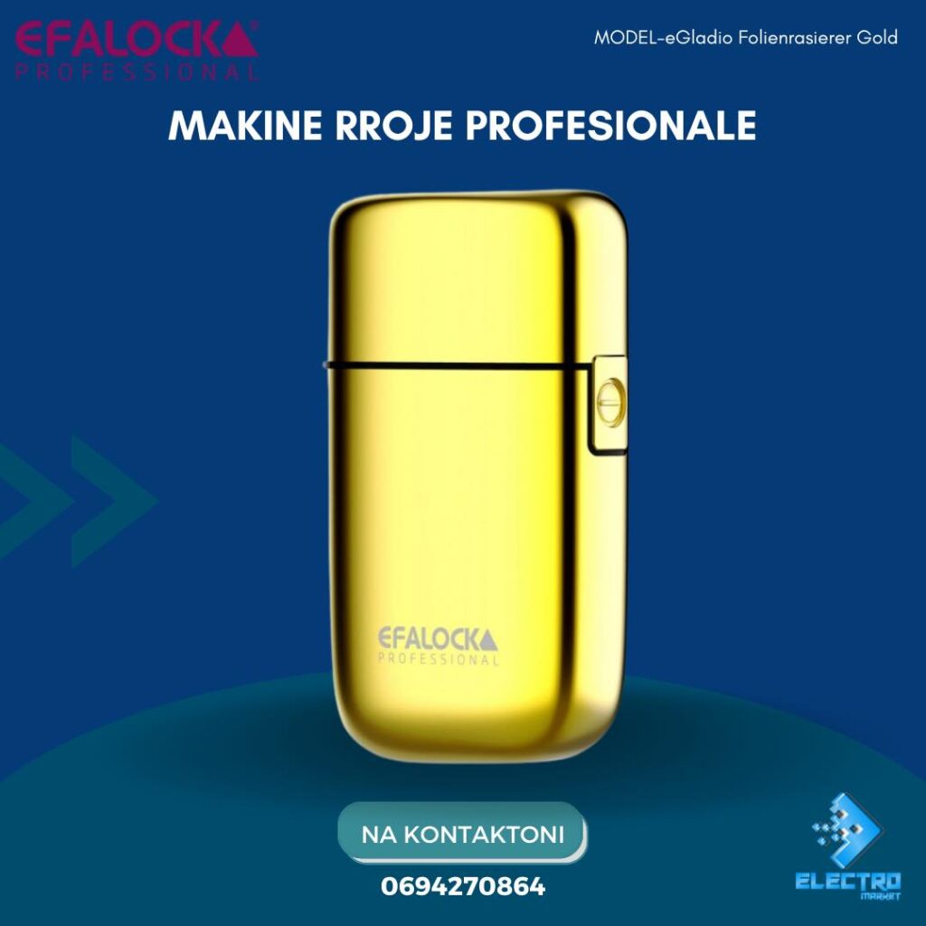 Makine Rroje Profesionale Efalock 📌Detajet Koha e funksionimit: deri në 80 min Koha e karikimit: 180 min Fletë rroje ari-titan: hipoallergjike, kundër qimeve që rriten Kokë rruajtjeje Teknologji e veçantë me kënd për një rruajtje të saktë Gjatësia e rruajtjes: 0,1 mm gjerësia e rruajtjes: 43 mm Motori rrotullues: i qetë dhe i fuqishëm (deri në 9000 U/min.) Tensioni i funksionimit: 100-240 V Aksesore: mbrojtjen e tehut, furçën e pastrimit, spinën e rrymës 📍Ndodhemi ne tregun Çam, Tirane 🚚 Mundesojme dergesa ne te gjithe Shqiperine
