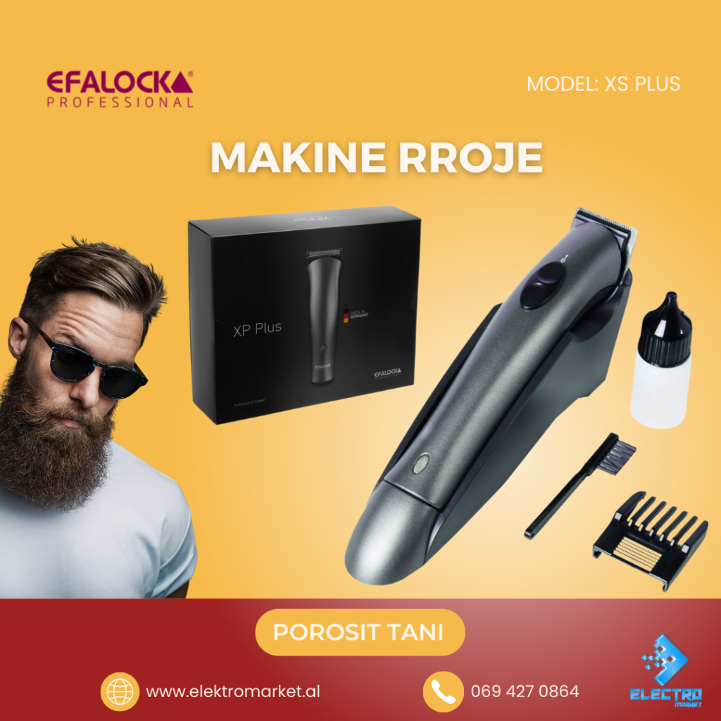 Makine Rroje Profesionale Efalock 📌 Detajet Trupi teresisht prej alumini Koha e funksionimit: 180 minuta Koha e karikimit: 120 minuta Bateri Litiumi Flete rroje titani Motorr i fuqishem 7000 rpm 📍Ndodhemi ne tregun Çam, Tirane 🚚 Mundesojme dergesa ne te gjithe Shqiperine Per cdo informacion ose porosi online na kontaktoni ne 📥/📞 Whatsapp ose tel 0694270864