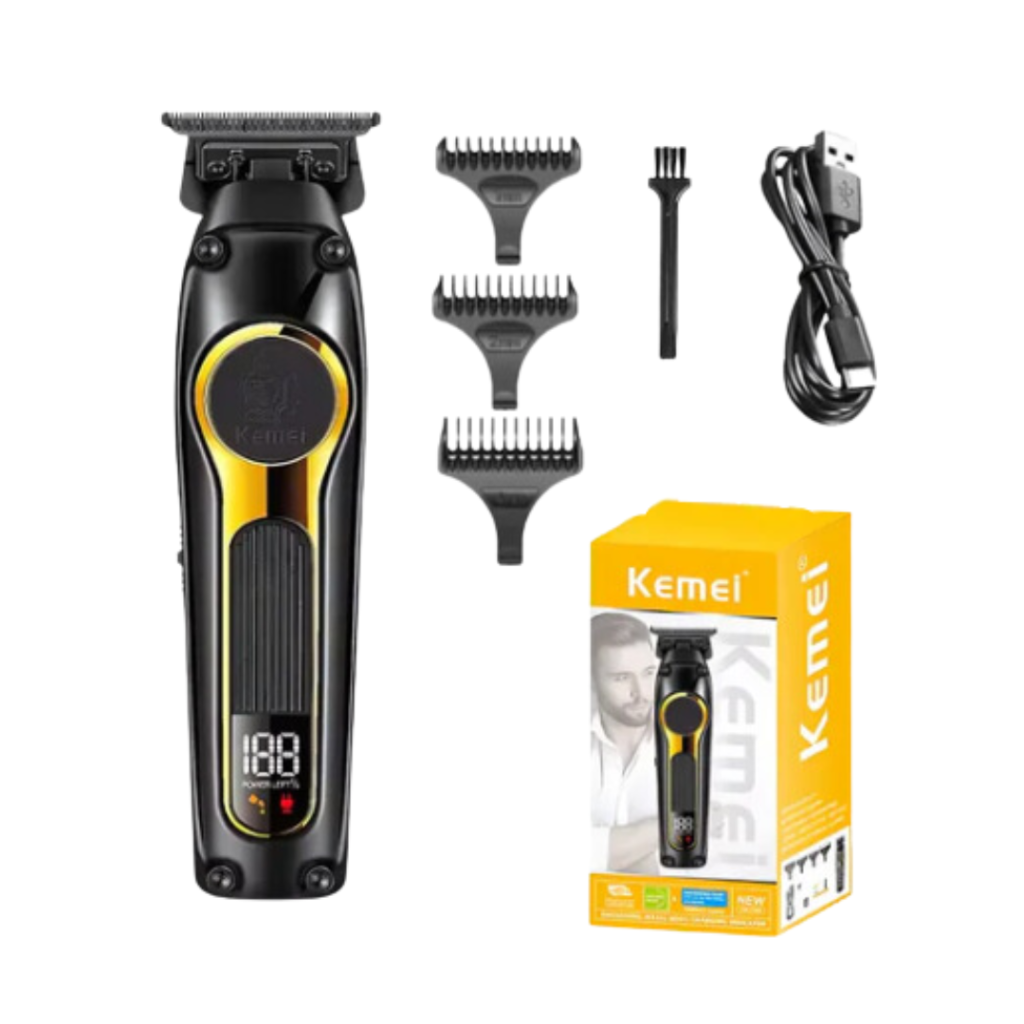 Makine Rroje Kemei. Modeli KM-2812 📌Specifikat Ngjyra: Argjend Përmasat: 14×4.1cm/5.5×1.6in Materiali prerës: Çeliku i karbonit Materiali i trupit: Metal Kufiri i Krehrave: 1/2/3 mm Tensioni nominal: 110-240 V Fuqia: 10 W Hyrja: 5 V Gjatësia e kabllit: Rreth 160 cm/63.0 inç