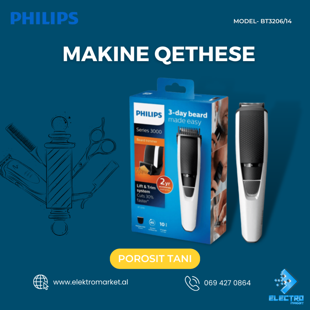Makine Qethese Philips 📌Detajet: Gjeresia e kreherit preres : 32 mm Rezistent ndaj ujit I lehte per tu pastruar. Me Korent Mund te perdoret pa qene ne korent per 45 min Indikator që tregon karikimin Largesia midis niveleve 0.5-10 mm 📍Ndodhemi ne tregun Çam, Tirane 🚚 Mundesojme dergesa ne te gjithe Shqiperine Per cdo informacion ose porosi online na kontaktoni ne 📥/📞 Whatsapp ose tel 0694270864