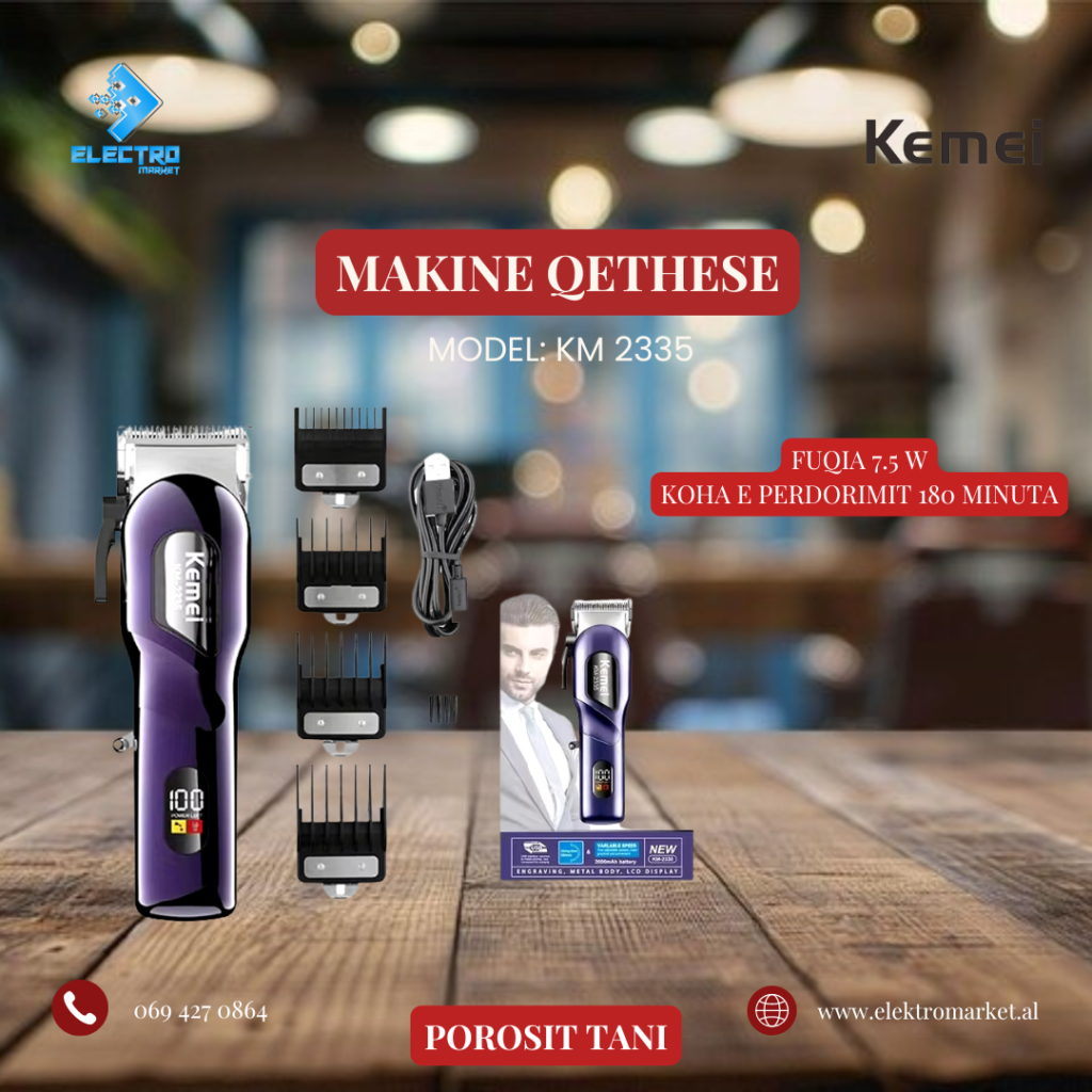 Makine Qethese Kemei 📌 Detajet: Voltazhi: 110-220V, 50/60Hz (Bivolt) Fuqia: 5W Dizajn Ergonomik Motor i fuqishem Karikimi me USB 📍Ndodhemi ne tregun Çam, Tirane 🚚 Mundesojme dergesa ne te gjithe Shqiperine Per cdo informacion ose porosi online na kontaktoni ne 📥/📞 Whatsapp ose tel 0694270864