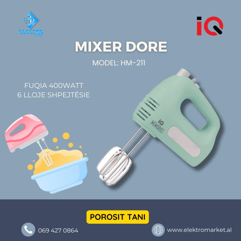 Mixer Dore IQ 📌 Detajet: - 5 shpejtësi - Me çelës sigurie për rrahëset - Me funksion të sigurt TURBO 📍Ndodhemi ne tregun Çam, Tirane 🚚 Mundesojme dergesa ne te gjithe Shqiperine Per cdo informacion ose porosi online na kontaktoni ne 📥/📞 Whatsapp ose tel 0694270864