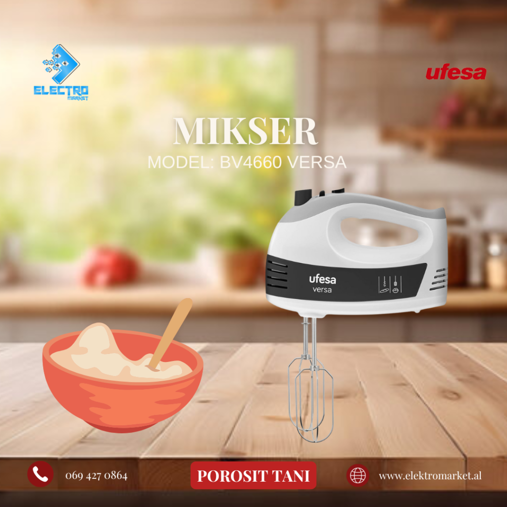 Mikser Ufesa 📌 Detajet: Fuqia 500 W Numri i shpejtesive 5 + funksion Turbo 2 rrahese Dizajn ergonomik 📍Ndodhemi ne tregun Çam, Tirane 🚚 Mundesojme dergesa ne te gjithe Shqiperine Per cdo informacion ose porosi online na kontaktoni ne 📥/📞 Whatsapp ose tel 0694270864