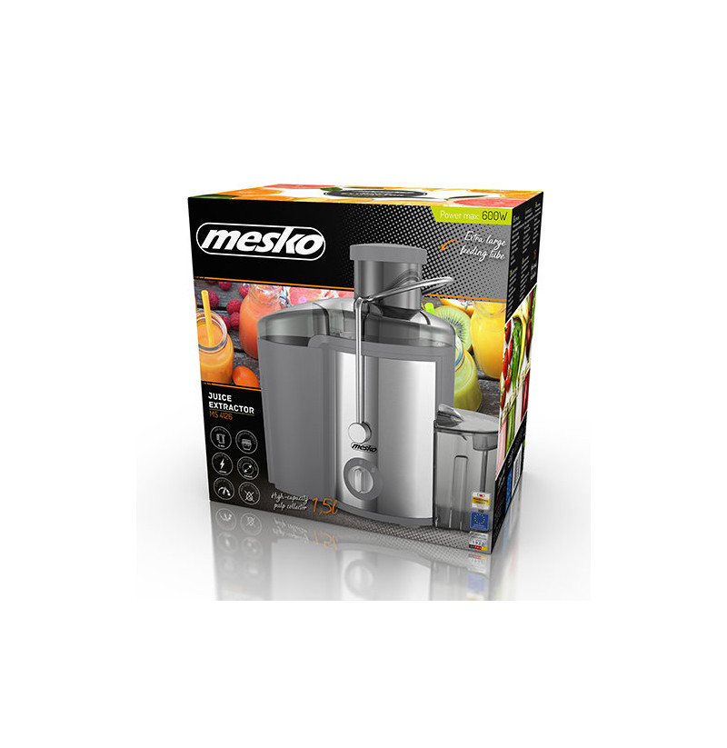 Shtrydhese Mesko 📌 Detajet: Ju lejon te pergatisni lengje frutash dhe perimesh sipas deshires Mjafton qe frutat dhe perimet te ndahen ne 2-3 pjese dhe te futen tek gypi shtrydhes me diameter 65 mm Filtrimi i pjeseve behet ne menyre te perkryer duke lene ne njeren ene copat e frutave dhe ne anen tjeter lengu me me shume vitamina Vellimi i gotes se copezave eshte (1.5L) dhe vellimi i gotes se lengut eshte (0.45L) Me sistem bllokimi i cili nuk lejon ndezjen e pajisjes nese mbyllja nuk eshte bere ne menyre te sakte Me dy nivele shpejtesie per shtrydhje sa me efikase E mbyllur ne pjesen e siperme e cila nuk lejon qe ambjenti juaj te behet pis gjate shtrydhjes Fuqia maksimale eshte 600 W dhe minimale eshte 400 W Pastrohet lehtesisht si dhe mund te lahet ne lavastovilie Material inox dhe plastik te nderthurur Permasat jane 30,5 x 18,5