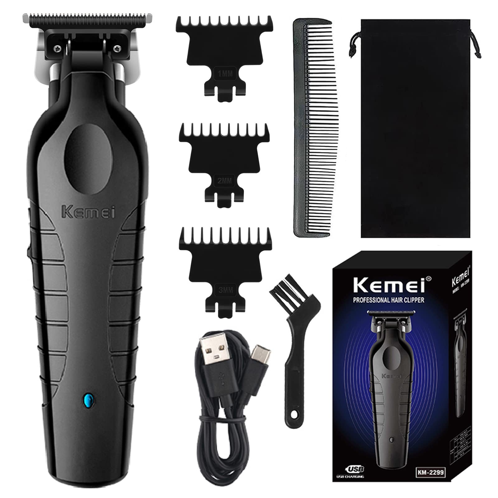 Perfshin 3 krehër (1/2/3 mm), furçë pastrimi, karikues me lidhje USB dhe pajisje mbrojtëse plastike ABS për gjatësi të ndryshme flokësh