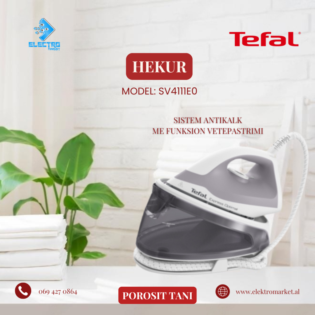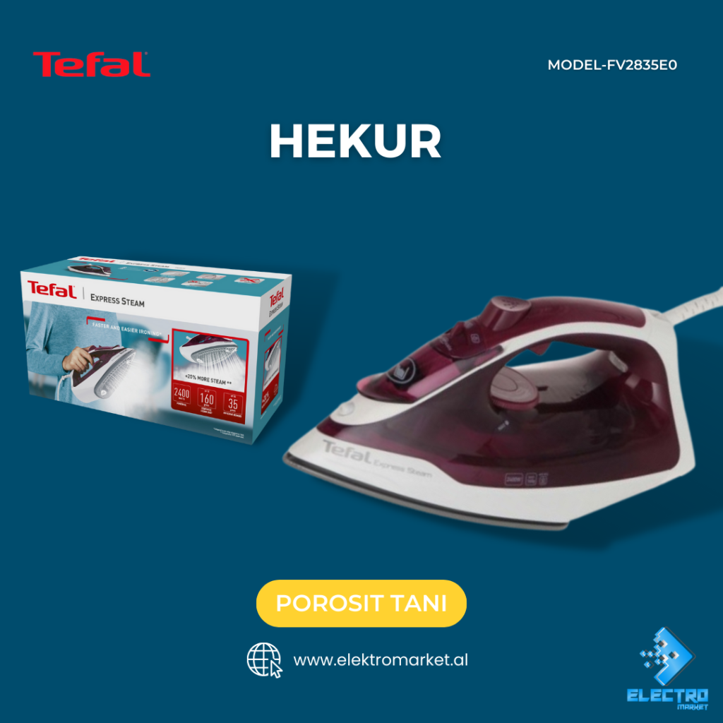 Hekur Tefal 📌 Detajet: Fuqia: 2500 W Lloji Pllakes: Durilium Airglide Anti rrjedhje Anti Calc Depozita: 0.27 L Presioni Avullit: 195 g/min Funksion vetepastrues 📍Ndodhemi ne tregun Cam, Tirane 🚚Mundesojme dergesa ne te gjithe Shqiperine Për çdo informacion ose porosi online na kontaktoni në 📥 DM/📞Whatsapp ose tel 0694270864